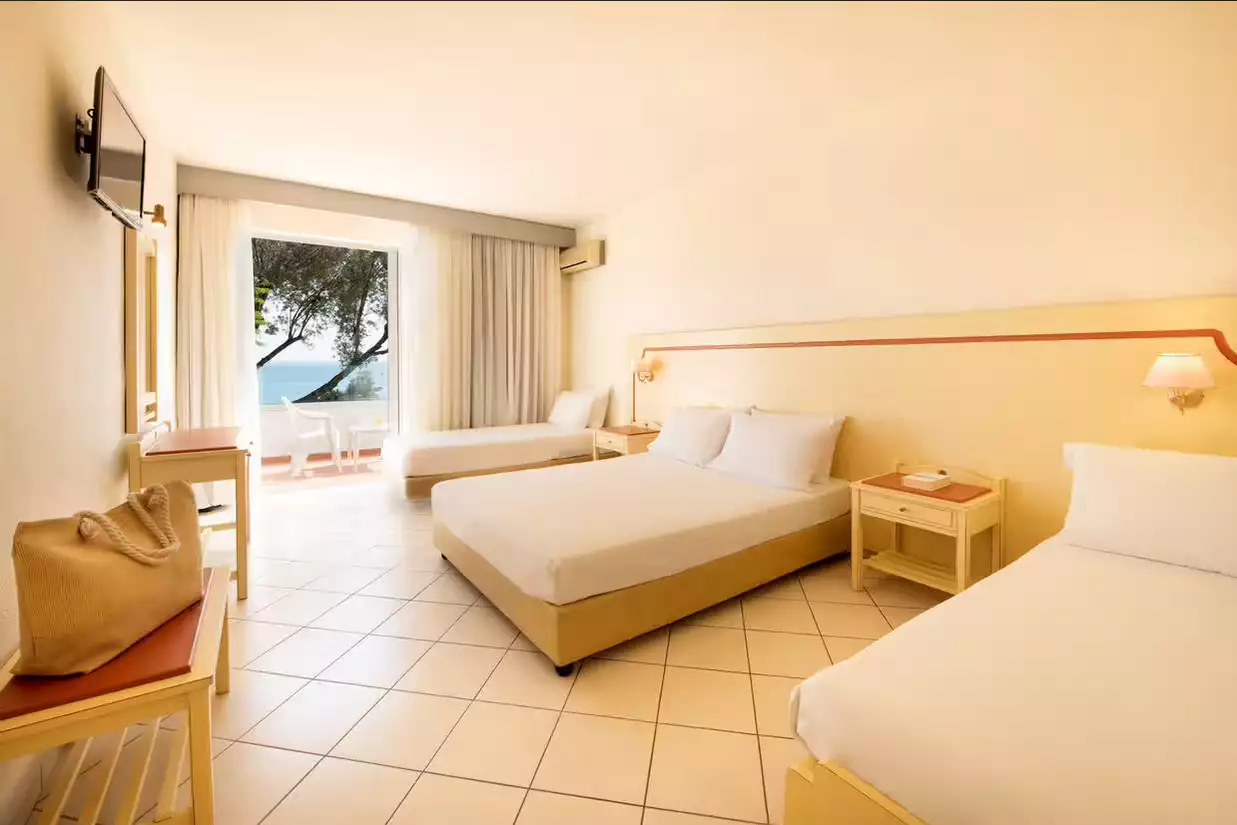 Vous serez hébergés en chambre standard d'environ 24 m² avec vue jardin. Elle peut accueillir jusqu'à 3 adultes (ou 2 adultes et 1 enfant) et possède tout le confort nécessaire au bon déroulement de votre séjour. Lit double ou 2 lits simples, WIFI gratuit, salle de bain avec sèche-cheveux, climatisation, coffre-fort, balcon ou terrasse.... Un seul mot ! Profitez ! Des chambres plus spacieuses pouvant héberger jusqu'à 4 personnes sont disponibles. (en supplément)