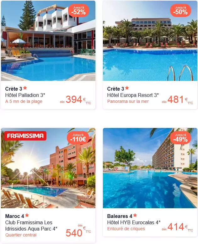 Envie de vacances, de soleil et d'aventure ? Profitez de superbes offres spéciales et partez sur un coup de tête en vacances. Il vous suffit de faire vos valises et c'est parti !