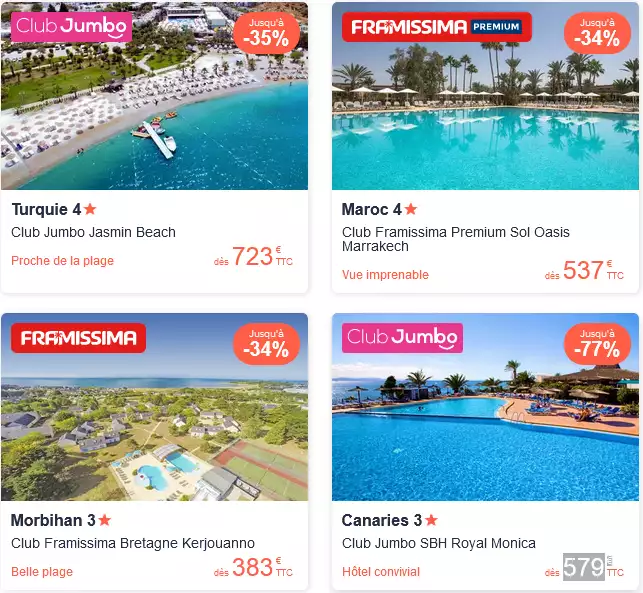 - Vous aurez accès à plus d'offres si vous voyagez hors saison ou hors vacances scolaires, mais vous n'aurez pas la flexibilité des dates, qui sont imposées et difficiles à modifier.