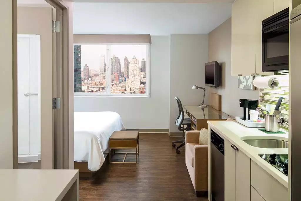 Votre pied-à-terre sera l’Ôcity Xperience Element New York Times Square West 4*, un refuge urbain qui combine confort et design moderne :