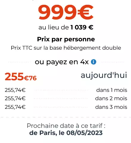 - Séjour disponible sur plusieurs villes de départ
