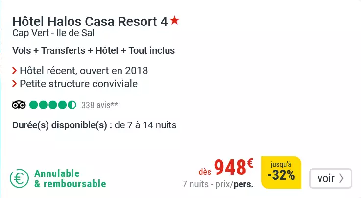 Réservez vite votre prochain séjour à petit prix au Cap-Vert ! Profitez dès maintenant d' un séjour pas cher sur l'Ile de Sal et réservez vos prochaines vacances au soleil !