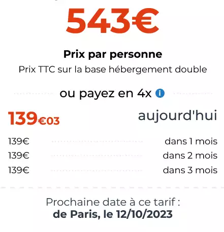 - Séjour disponible sur plusieurs villes de départ