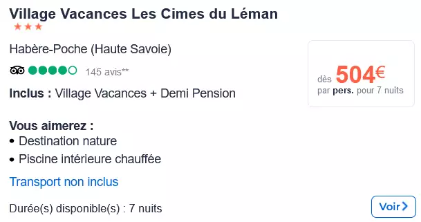 Vous serez accueillis au Village vacances Les Cimes du Léman 3* pour un séjour en formule demi pension. Le Club se situe à Habère-Poche. Vous pourrez accèder directement aux pistes de ski depuis l'établissement et vous êtes à moins de 5 minutes en voiture du télésiège du Darandet. Des activités comme la randonnée en raquettes, marche nordique, ski de fond etc vous sont proposées à quelques mètres de la résidence. Atout non négligeable : l'hôtel possède une piscine extérieure couverte et chauffée.