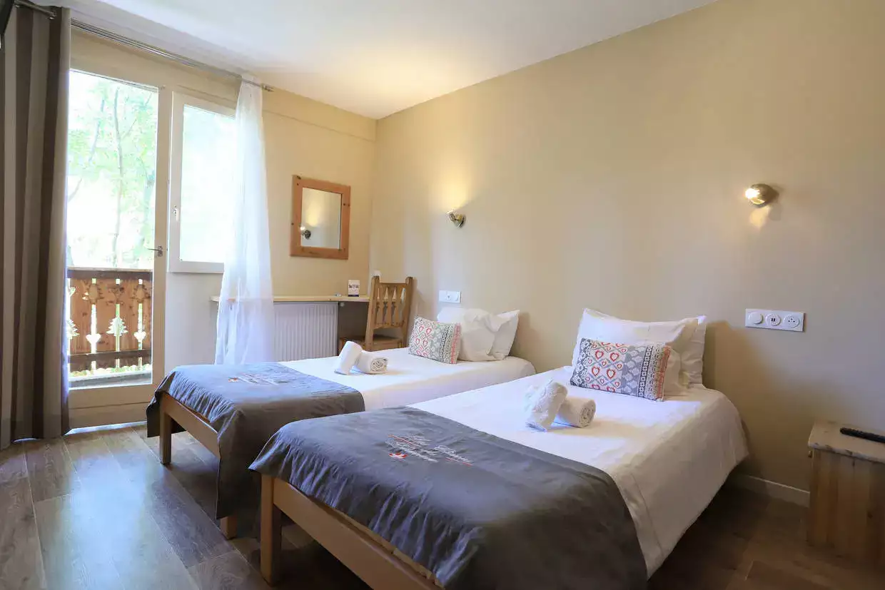 Vous serez hébergés en chambre double d'environ 15m² équipée d'une salle de bain avec douche ou baignoire, un lit double et des WC séparés. Elles peuvent accueillir jusqu'à 2 personnes avec la possibilité de rajouter un lit bébé. Des chambres communicantes sont disponibles sur demande.