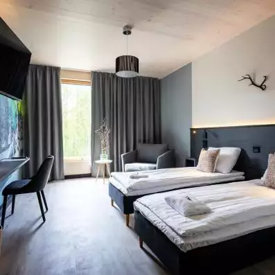 - Hôtel rénové en 2025, situé en centre-village, ambiance paisible, Wi-Fi gratuit, chambres spacieuses, deux saunas traditionnels, espace détente et spa avec bains à remous (avec supplément)