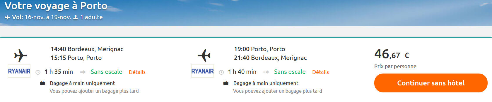 Venez découvrir le charme de Porto qui ne vous laissera pas indifférent ! Vous ne manquerez pas de vous rendre à la Ribeira ( vieux Porto ) ainsi qu'au Palacio Da Bolsa et dégusterez le vin de cette ville célèbre dans les quatres coins du monde . Porto est une ville très agréable où vous pourrez découvrir les mets portugais à moindre coût en remontant la ville haute qui est le quartier commerçant de la ville . Alors on attend plus que vous ! réservez votre vol A/R avec opodo dès 47€ par personne !