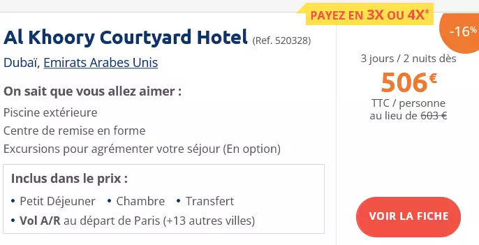 - Possiblité de réserver différentes excursions pour découvrir Dubaï
