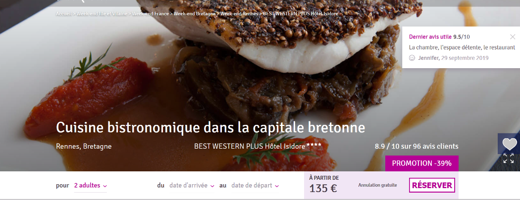 Bienvenue à l'hôtel Best Western Plus hôtel Isidore. Vous serez logé en chambre double classique en centre ville à seulement 10 minutes de la gare et de l'aéroport de Rennes. Profitez, durant votre séjour, d'un petit déjeuner, d'un diner et d'un accès à l'espace détente tout en visitant la ville et ses curiosités . L'hôtel est noté 4,5/5 sur Tripadvisor avec d'excellents avis.