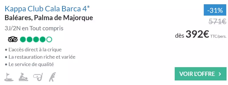 Une envie de partir pas cher en formule tout inclus pour un week-end aux Baléares ? Faites une surprise à vos proches et réservez votre séjour à Palma de Majorque ! Les Baléares c'est à la fois ses plages paradisiaques, son climat idéal, ses jolies criques à découvrir mais c'est surtout une destination proche de chez vous pour vous évader le temps d'un week-end.